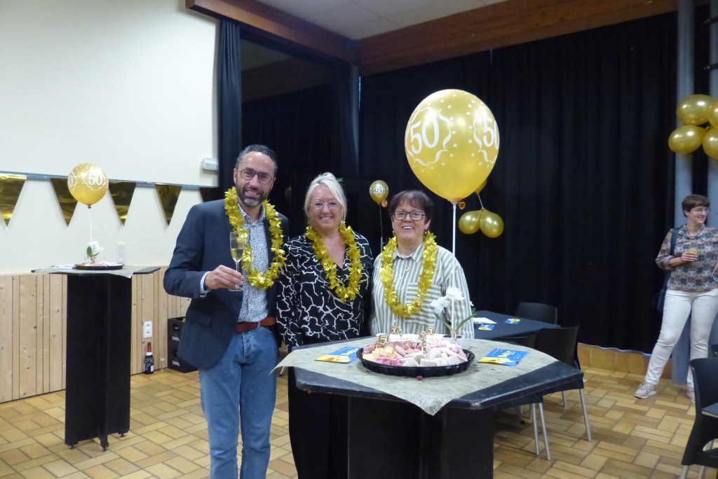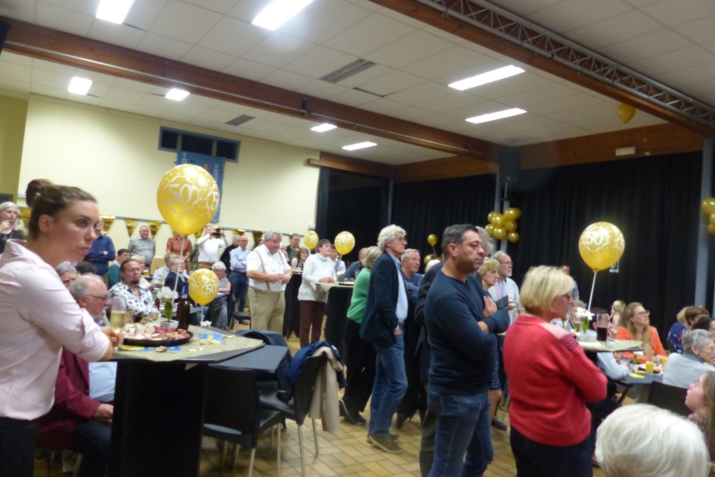 Onder impuls van wijlen burgemeester Henri Claerebout startte men na WO II met een mannentoneel. "Vreugde na arbeid" was de naam van de nieuwe toneelgroep. Later, in de jaren zestig, werd het vrouwentoneel opgericht onder de naam "Moed en Volharding", met Elise Bottu als drijvende kracht.