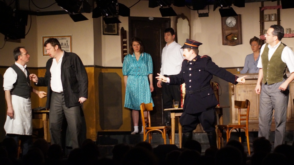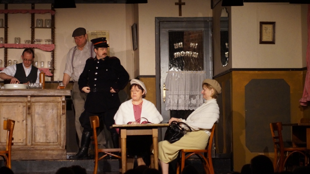 We zijn zomer 1944 in het café “In de Mirior”, ergens in zuid-West-Vlaanderen, Voormezele bijvoorbeeld. Mong tapt en zijn vrouw Martha zegt hoe het moet. Hun dochter Geneviève is bedreven in de mannen het hoofd op hol brengen. Niet dat er zo veel zijn maar er komen een aantal habitués, stamgasten, zoals de garde, Sef, Dré Vandaele … De garde komt er omdat hij zijn “ronde” moet doen, Sef omdat hij anders toch alleen thuis zit en Dré komt er om te drinken zodat hij kan vergeten … Op een zomerse avond komt een jonge gast Jèng de Mirior binnengewaaid en zegt dat hij kan zorgen dat er ambiance is zodat er veel meer volk komt. Toevallig komt die avond een Duitse luitenant binnen die pech heeft, zijn auto chauffeert, en hij heeft dus water nodig. En plots is Jèng een uitstekend toneelspeler want normaal gezien moest hij in Duitsland gaan werken zijn. Geneviève doet haar reputatie alle eer aan tegenover Herr Luitnant en Dré spreekt ineens heel goed Duits … Meer moet dat niet zijn om heel wat komische en spannende situaties te hebben. Populaire oorlogmelodieën helpen sfeer geven aan dit geestig en ontroerend volks spel.